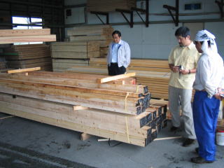 ![]() 検査の様子です。材質、含水率、寸法等を確認します。 | |