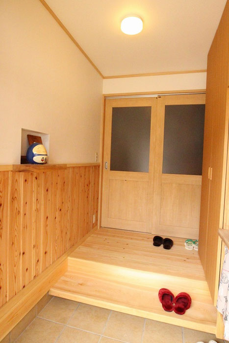[仕上] 屋根:平瓦葺き 外壁:サイディング張り+塗装 床:合板フローリング 壁:クロス仕上げ(各所腰板:杉羽目板) 天井:クロス仕上げ